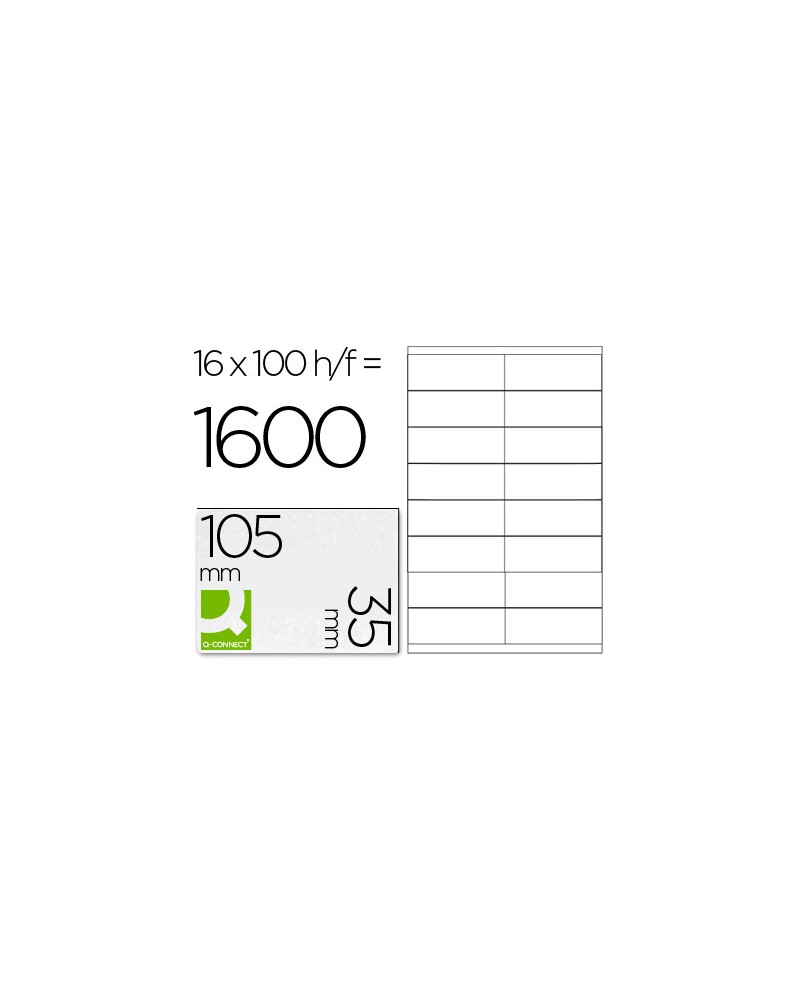ÉTIQUETTE ADHÉSIVE Q-CONNECT 105X35MM COINS DROITS IMPRIMANTE JET D'ENCRE LASER COPIEUR BOÎTE 100 FEUILLES 1600 UNITÉS