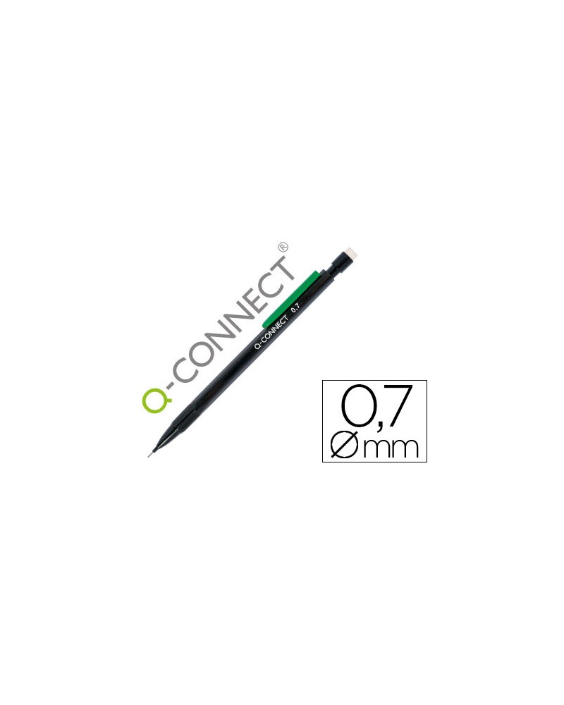 PORTE-MINE Q-CONNECT 0.7MM CORPS PLASTIQUE NOIR EMBOUT GOMME 3 MINES HB AGRAFE VERTE