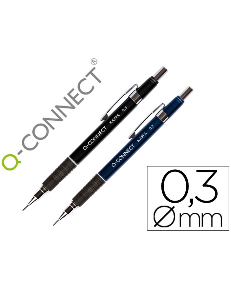 PORTE-MINE Q-CONNECT KAPPA 0.3MM POINTE RÉTRACTABLE GOMME BOUTON POUSSOIR GRIP CAOUTCHOUC COLORIS ASSORTIS