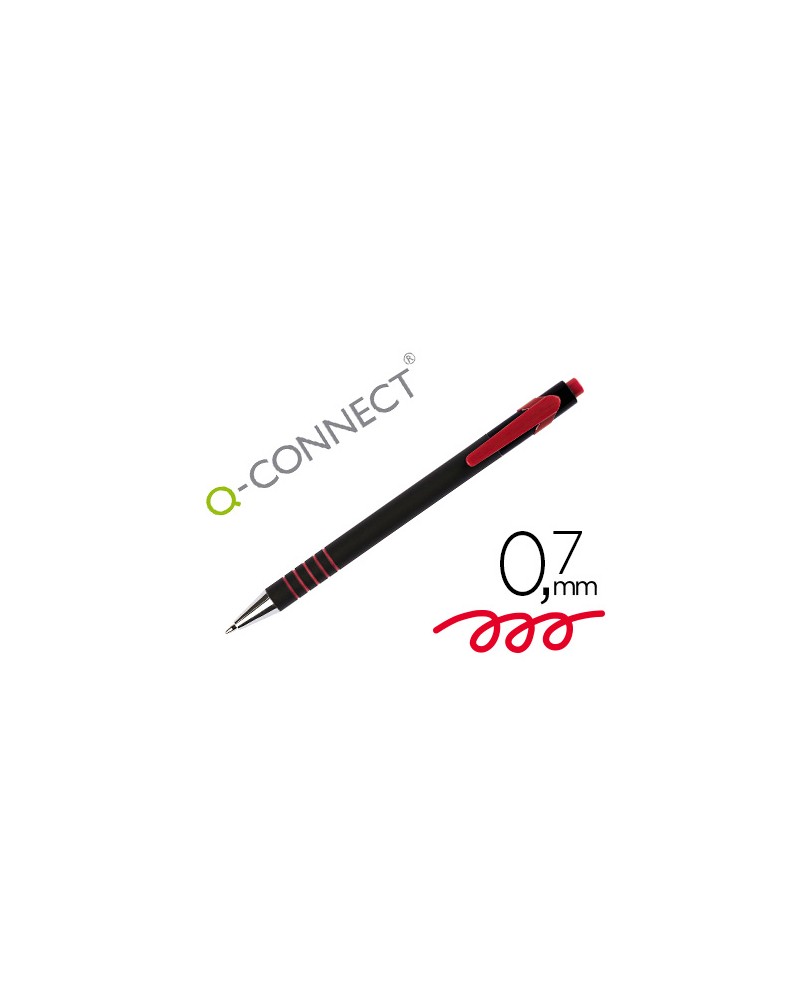 STYLO-BILLE Q-CONNECT LAMBDA RÉTRACTABLE ÉCRITURE MOYENNE 0.7MM POINTE MÉTAL CORPS CAOUTCHOUC COULEUR ENCRE ROUGE