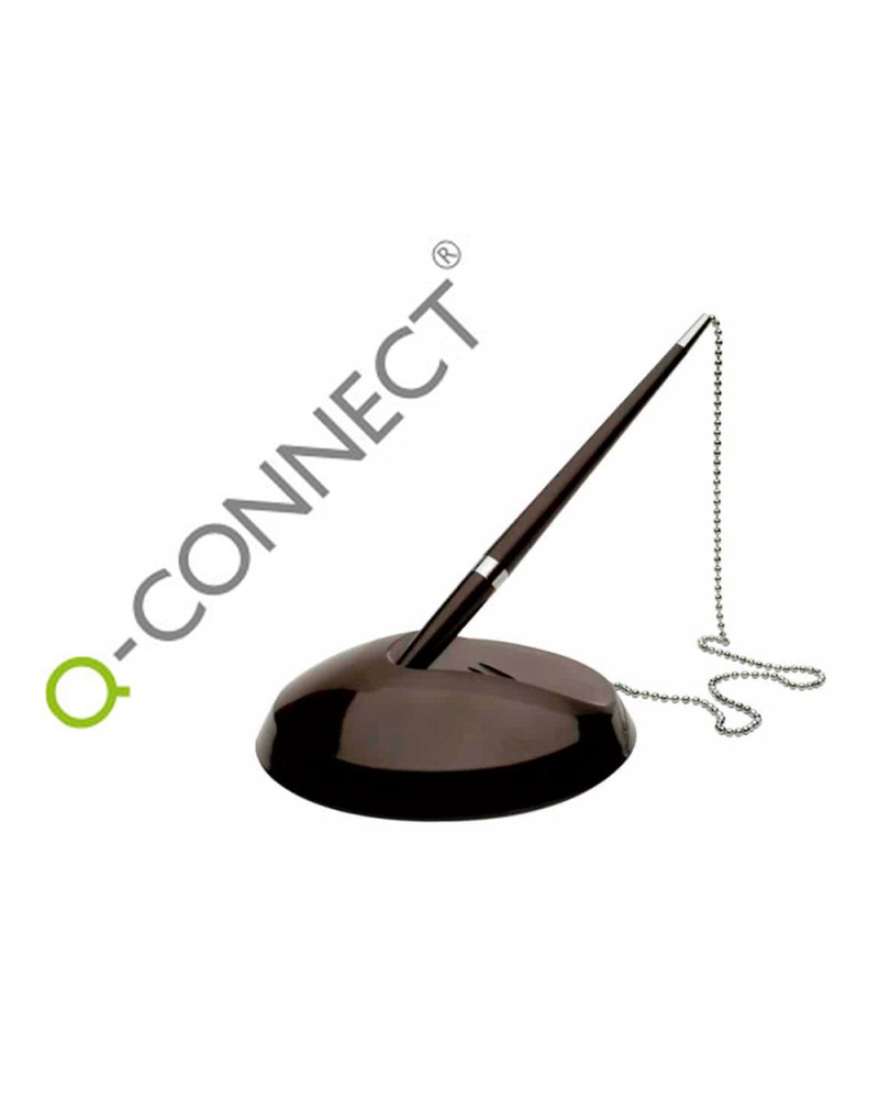 STYLO-BILLE Q-CONNECT SUR SOCLE PLASTIQUE LESTÉ CHAÎNETTE NICKELÉE RECHARGEABLE 4 RECHARGES ENCRE BLEUE