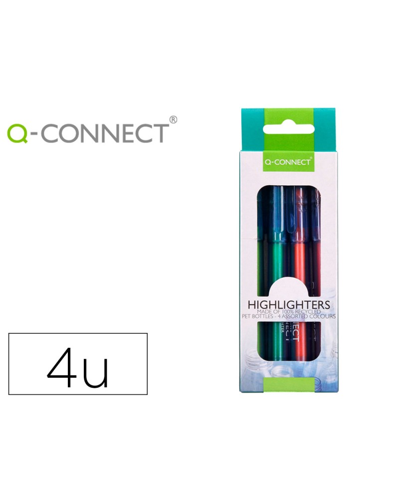 SURLIGNEUR Q-CONNECT FLUORESCENT CORPS TRANSPARENT POINTE BISEAUTEE TRAIT 1-5MM GRIP COLORIS ASSORTIS POCHETTE 4 UNITES