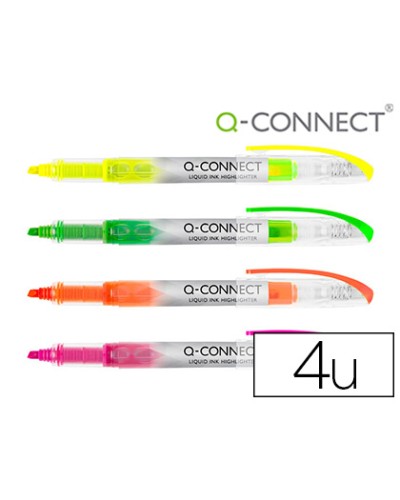 SURLIGNEUR Q-CONNECT SLIM LIQUID INK NON RECHARGEABLE POINTE BISEAUTÉE COULEURS ASSORTIES POCHETTE 4U